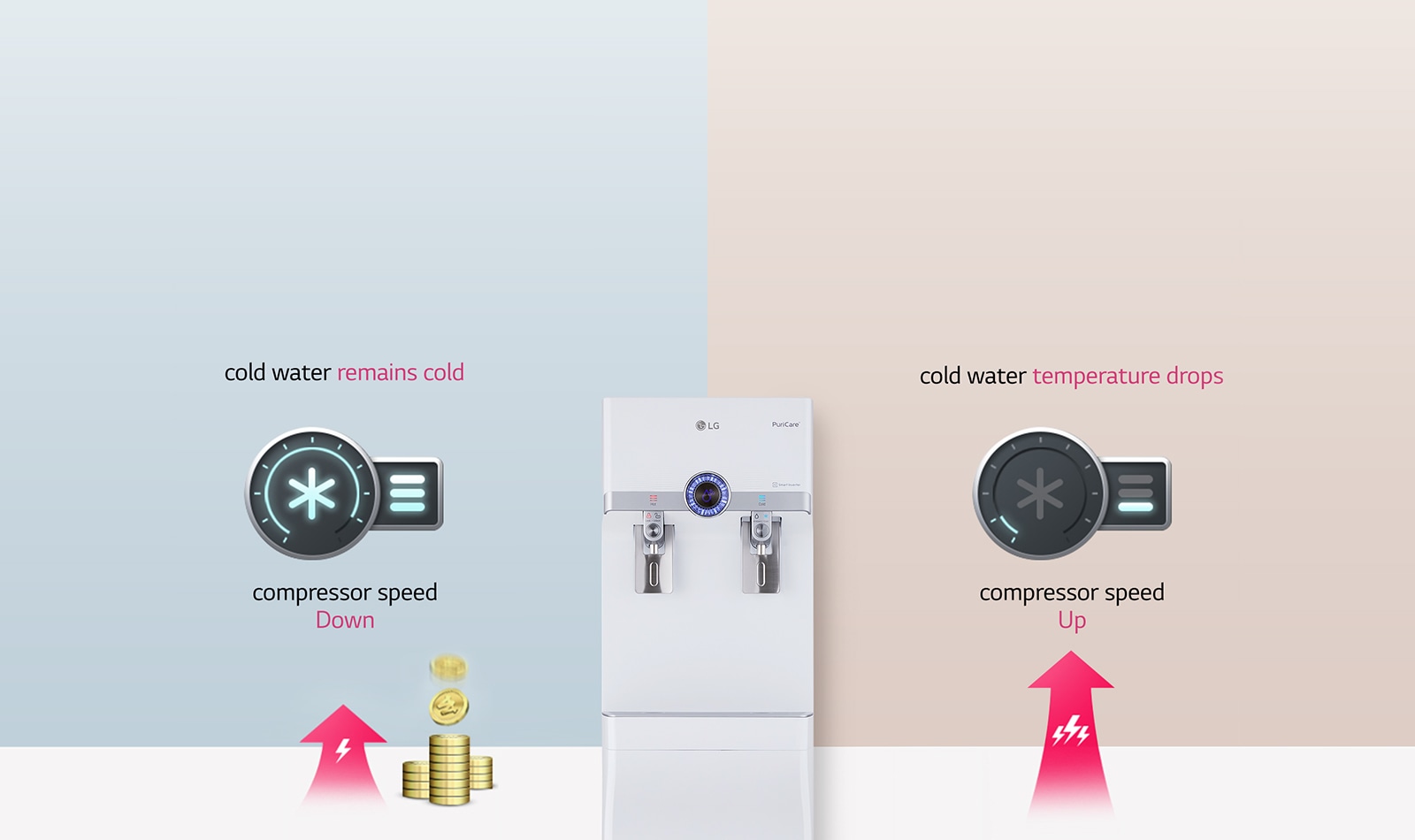 - LG Puricare™ saves energy with Smart Inverter Compressor™ system.