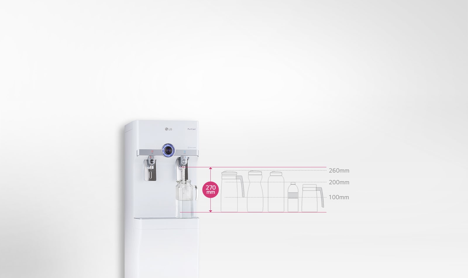 - Convenient 270mm gap fits any water bottle.